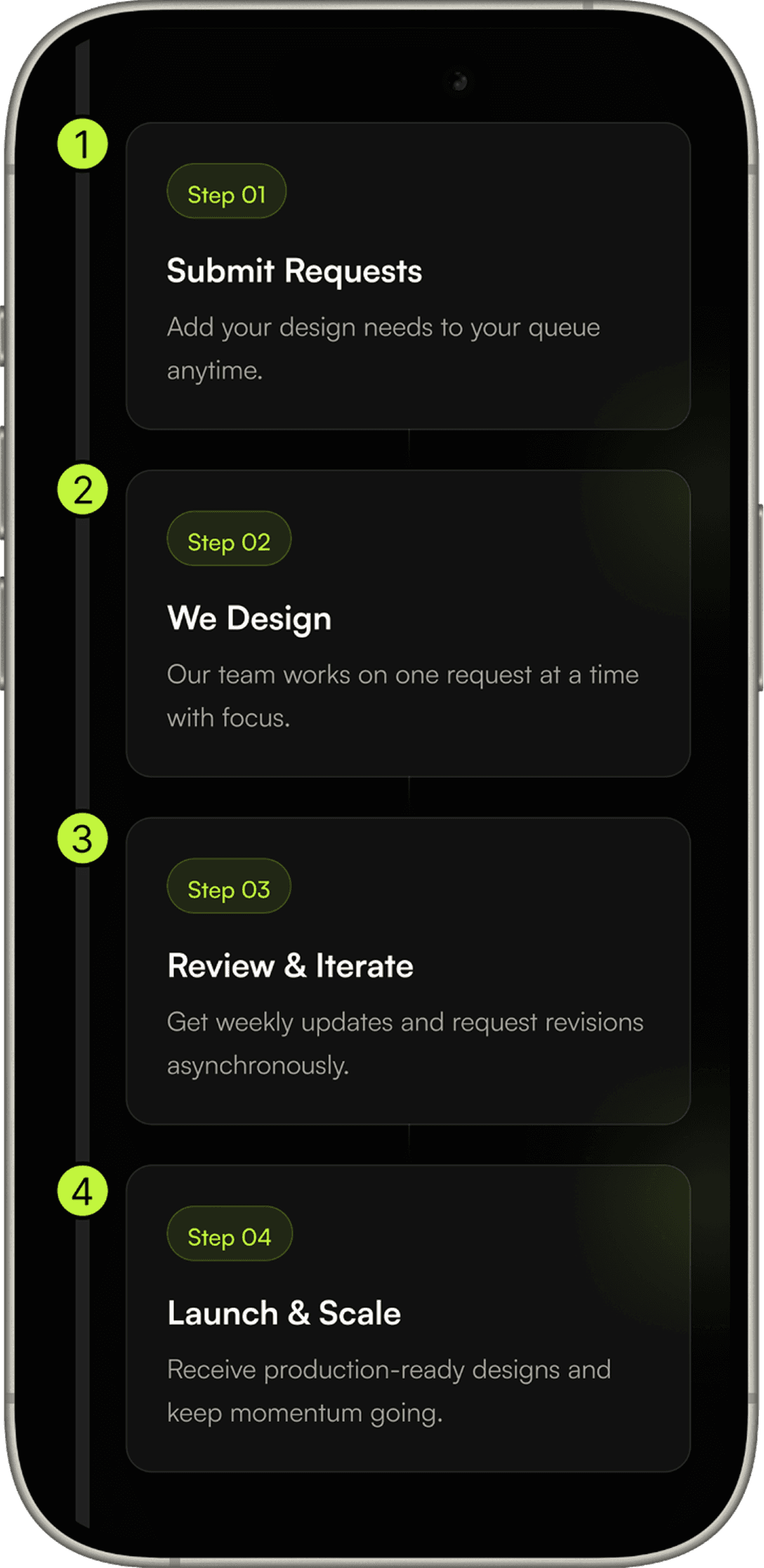 Growing startups that need consistent, high-quality design without hiring in-house.